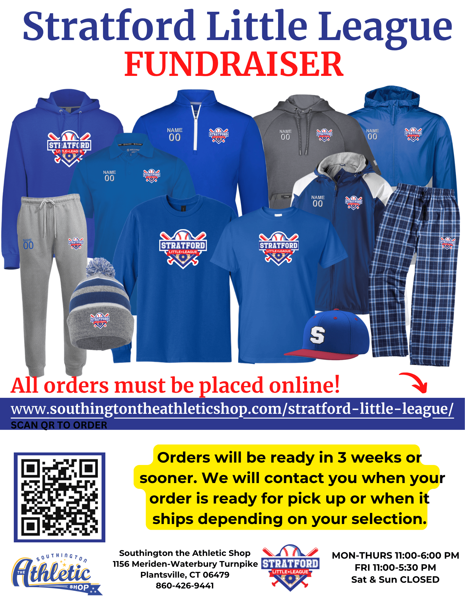 For each item purchased, a portion of the sale will be donated to Stratford Little League to support league operations, maintain equipment, and keep costs low for families.